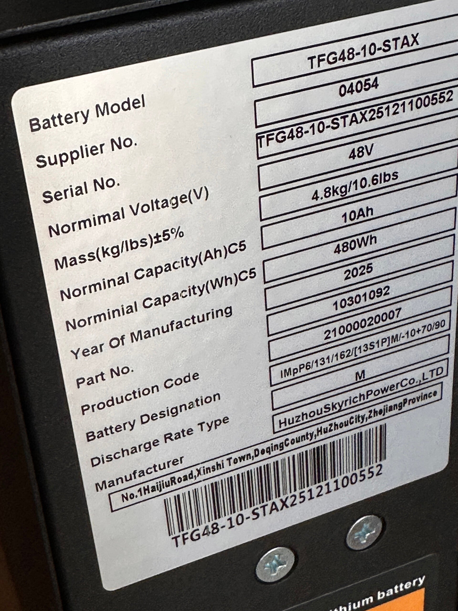Type: 48V/10Ah