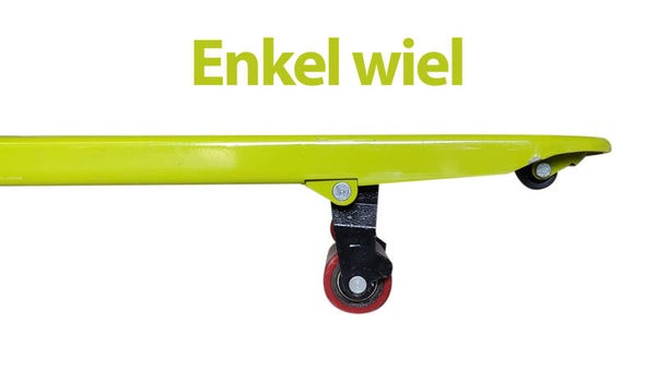 Als uw ondergrond volledig vlak is kunt u beter kiezen voor een enkel wiel aangezien deze dan net wat makkelijker te draaien is.